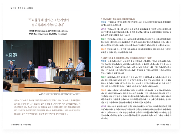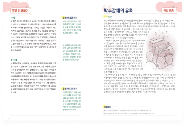 큐티를 어려워하는독자들도 편하게 다가갈 수 있는 쉬운 해설과 다양한 읽을거리로 '큐티하는 즐거움'이 있는 친근한 큐티지입니다.